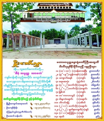 နဝကမ္မ အလှူတော်ငွေကျပ်တစ်သိန်းတို့ကိုဆက်ကပ် လှူဒါန်းထားပါသည်