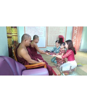 ဆွမ်းဆန်တော် ဆီ သကြား နို့ဆီ လဘက်ခြောက် ကော်ဖီမစ် ဆား အစရှိသည်တို့ကို ဆက်ကပ် လှူဒါန်းထားပါသည်